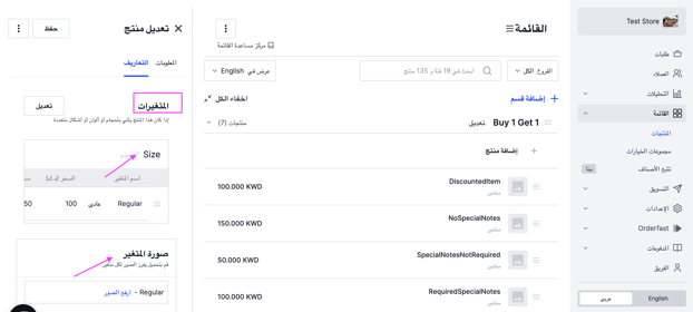 المتغيرات: إضافة أحجام أو ألوان أو أشكال مختلفة مع تحديد السعر لكل منها