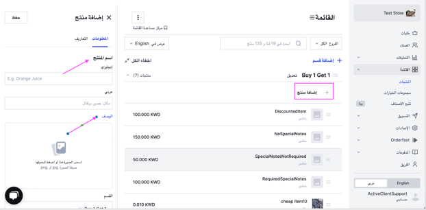 اسم المنتج: أدخله باللغتين إنجليزي و عربي.