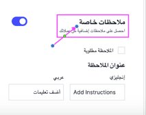 ملاحظات خاصة: تفعيل ملاحظات إضافية من العملاء (اختيارية أو إلزامية)
