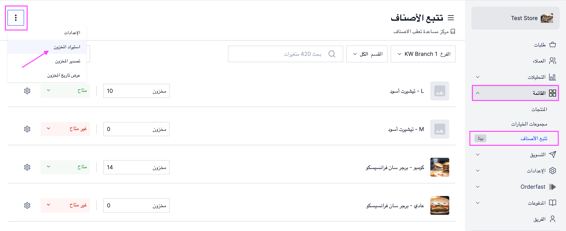 ١- اذهب إلى القائمة واختر تتبع الأصناف.