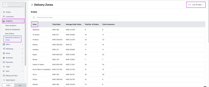 Zyda’s Branches & Delivery Zones analytics help you understand which branches perform best and which delivery areas receive the most orders, so you can optimize operations and improve delivery efficiency using real data.