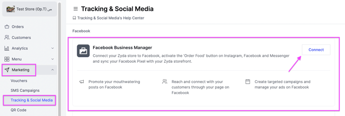 Follow this guide on Facebook if you face any issues - Have access level of Manager or Owner on Zyda's dashboard.
